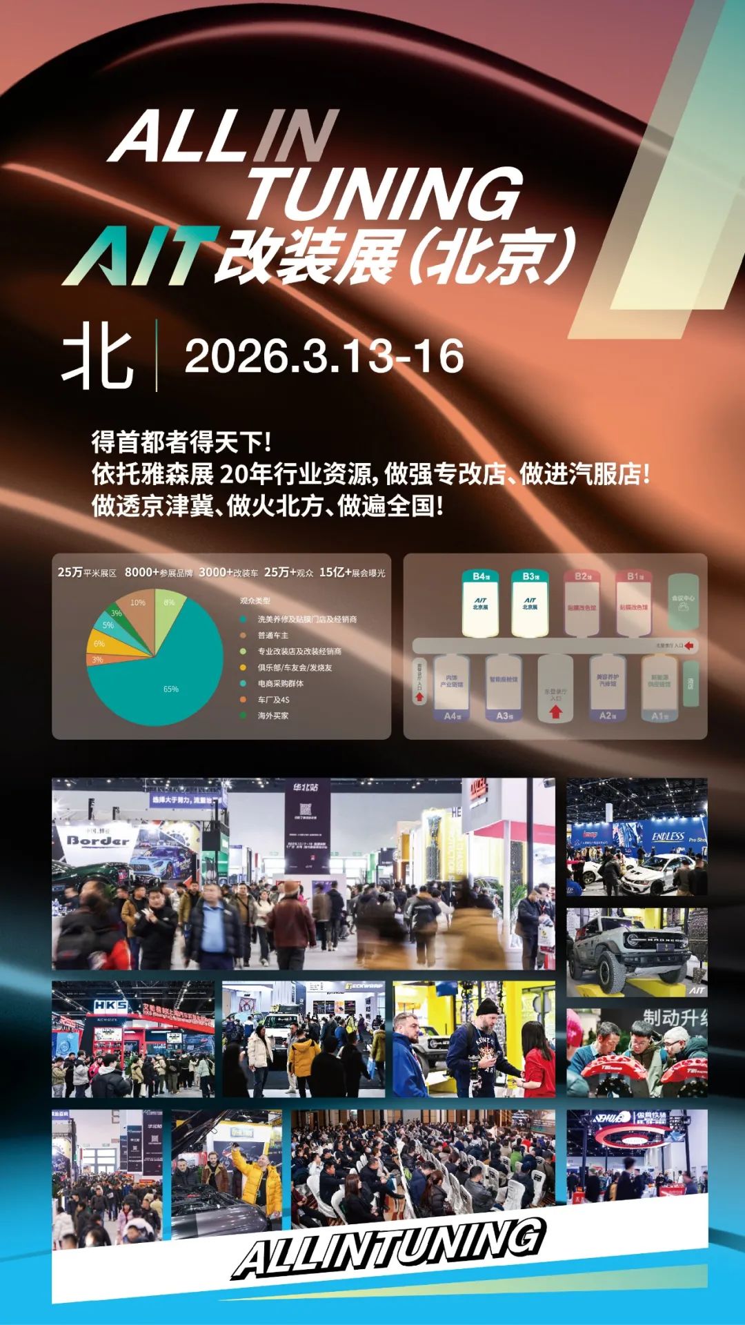 国内唯一一个南北联动的专业改装展会。中国汽车工业协会、雅森国际、杜塞尔多夫(上海)联合主办,与日本东京改装展(TAS)互为战略后援单位。强强联合办大展,主打有酷车、有人气、有生意。