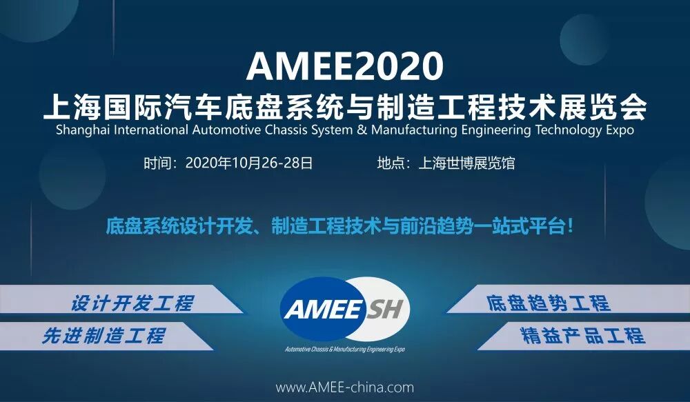 作为汽车行业***面向汽车底盘系统制造提供解决方案的专业展览会,AMEE2020上海国际汽车底盘系统与制造工程技术展览会将于2020年10月26-28日在上海世博展览馆举办,届时将有超过250家来自世界各地的***供应商,展示汽车底盘系统设计开发工程、底盘系统轻量化工程、汽车零部件先进制造工程、新能源电池托盘制造工程、底盘智能化-电动化-电子化、底盘零部件产品工程等技术解决方案!