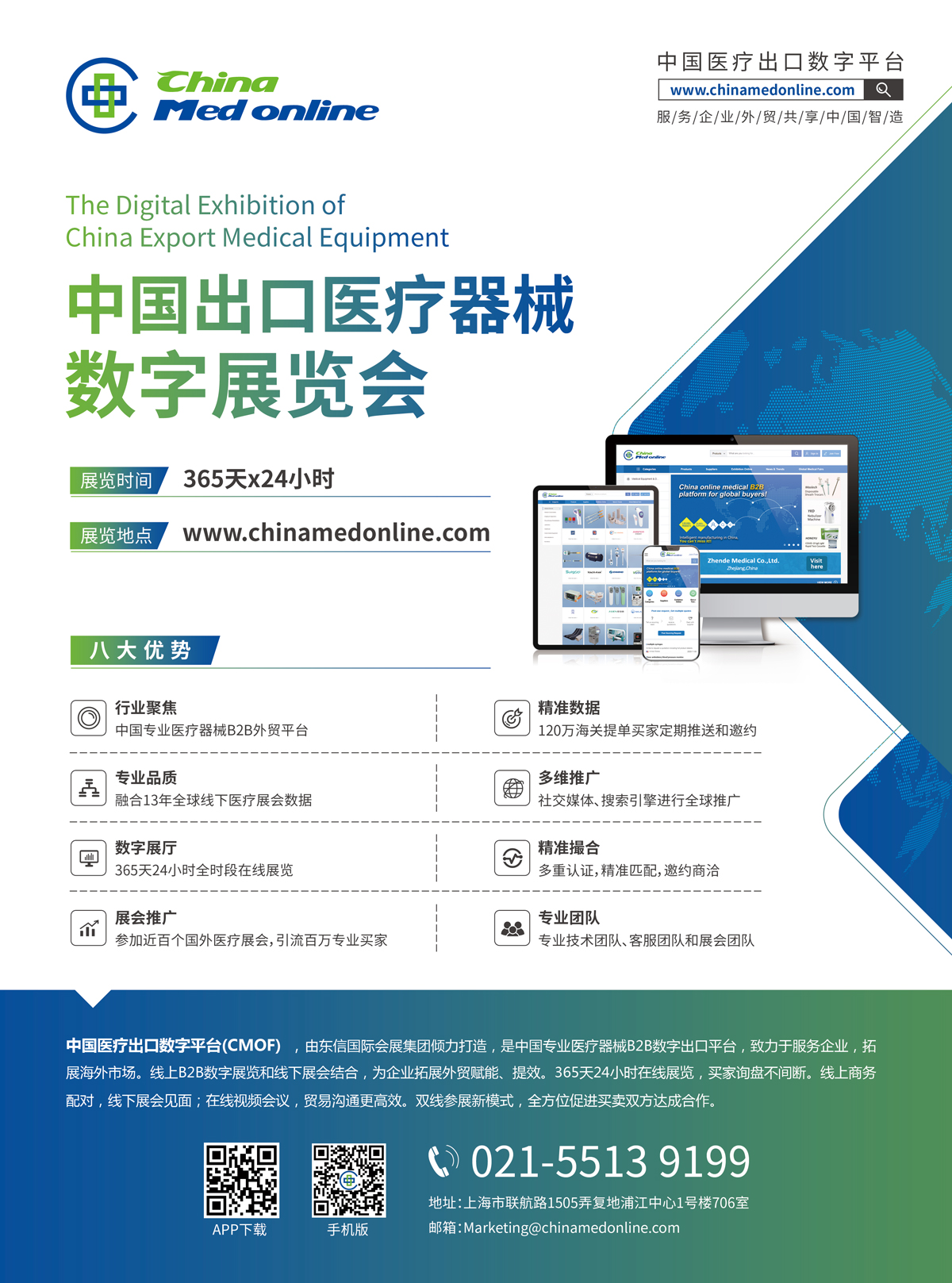●展览平台CHINAMEDONLINE.COM帮助您线上推广,精准预约,高效参展!