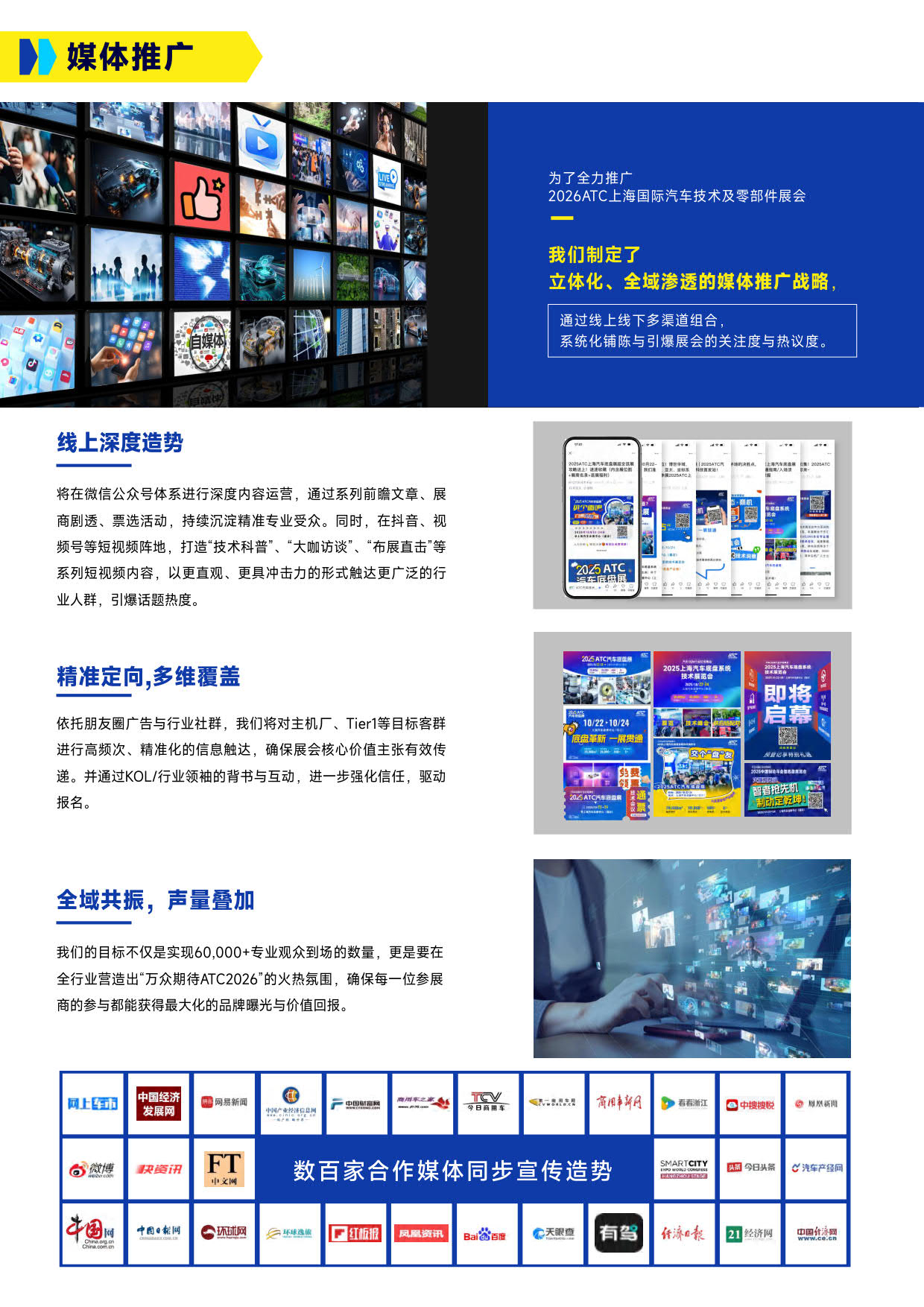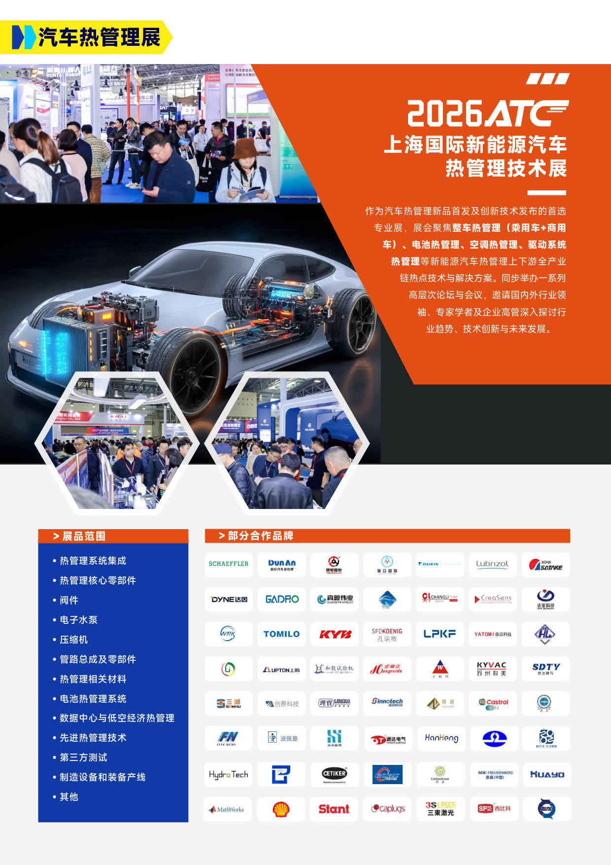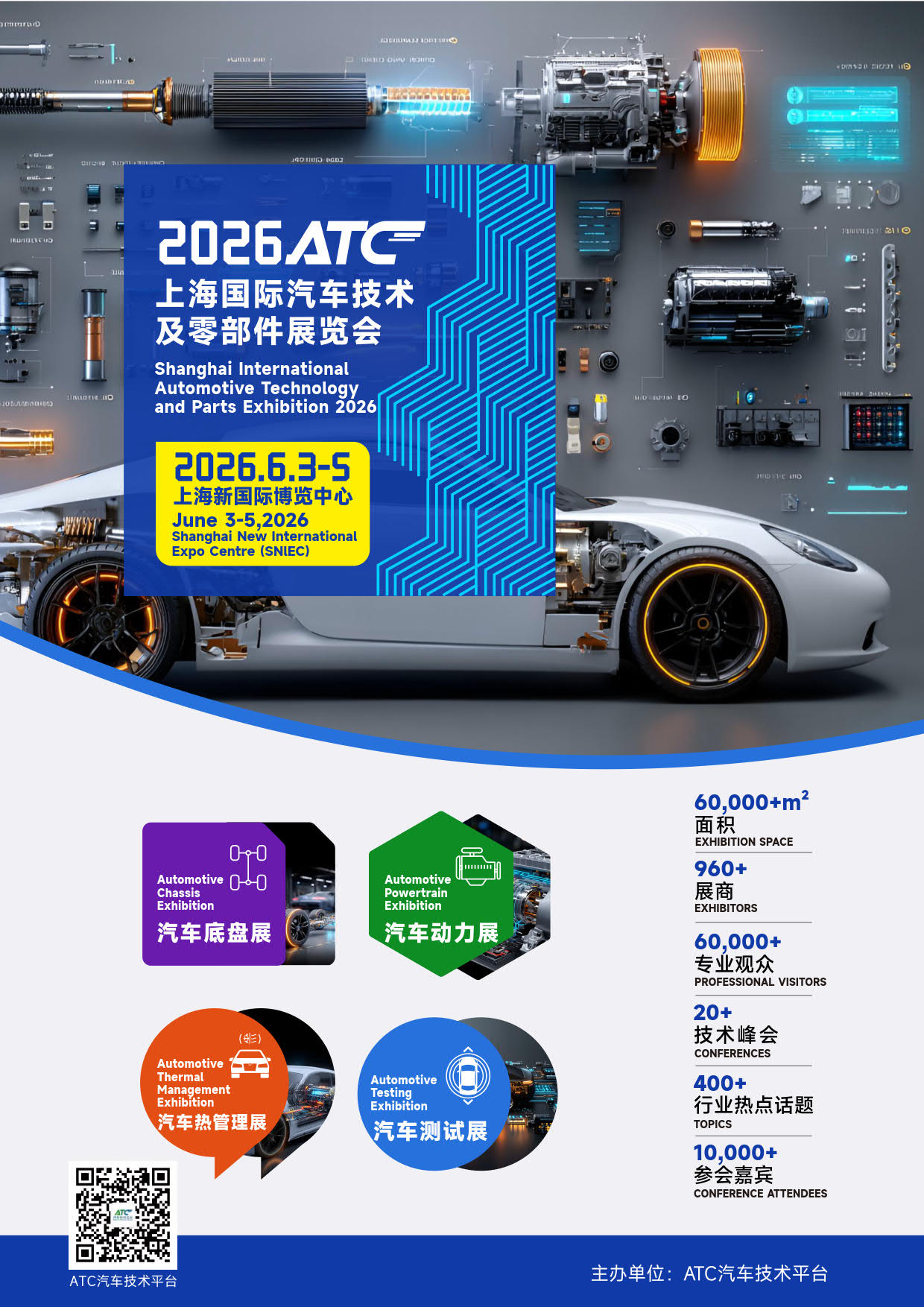 ATC自2014年起深耕汽车研发与技术领域,已积累庞大而精准的主机厂与T1总成专业观众资源。作为汽车OEM标杆展会,2026ATC上海国际汽车技术及零部件展将于2026年6月3-5日移师上海新国际博览中心举办,分设“汽车底盘展”“汽车动力展”“汽车热管理展”“汽车测试展”四大展会,展示面积超60,000平方米,汇聚近960家参展企业,集中展示底盘、动力、热管理、测试等关键技术领域的创新成果,预计吸引60,000专业观众参观交流,3,000名采购专业人士选品洽商。