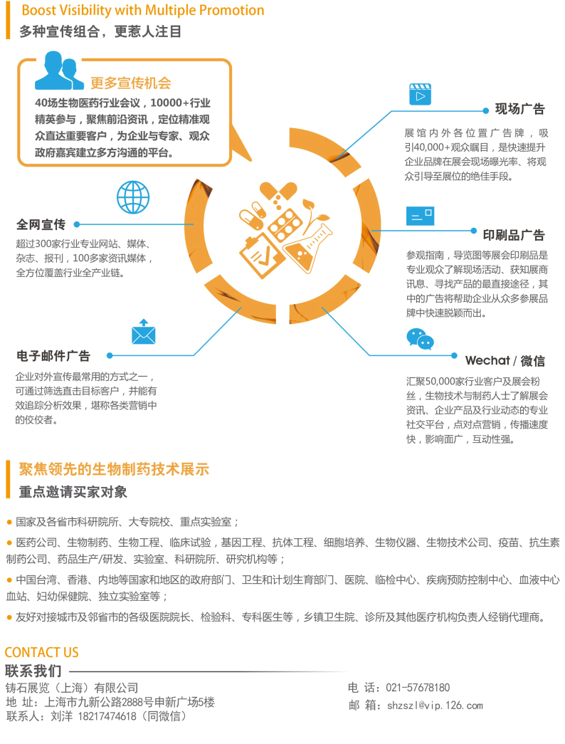 组织方将开展强大的组织宣传工作,届时将邀请医药公司、生物制药、生物工程、临床试验,基因工程、抗体工程、细胞培养、生物仪器、生物技术公司、疫苗、抗生素、制药公司、药品生产/研发、实验室、科研院所、研究机构等相关专家学者、工程技术人员及国内外贸易组织、参加此次展会。