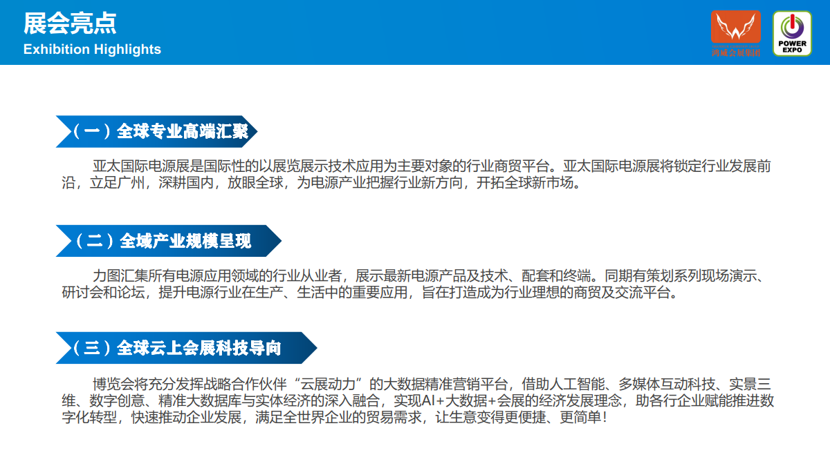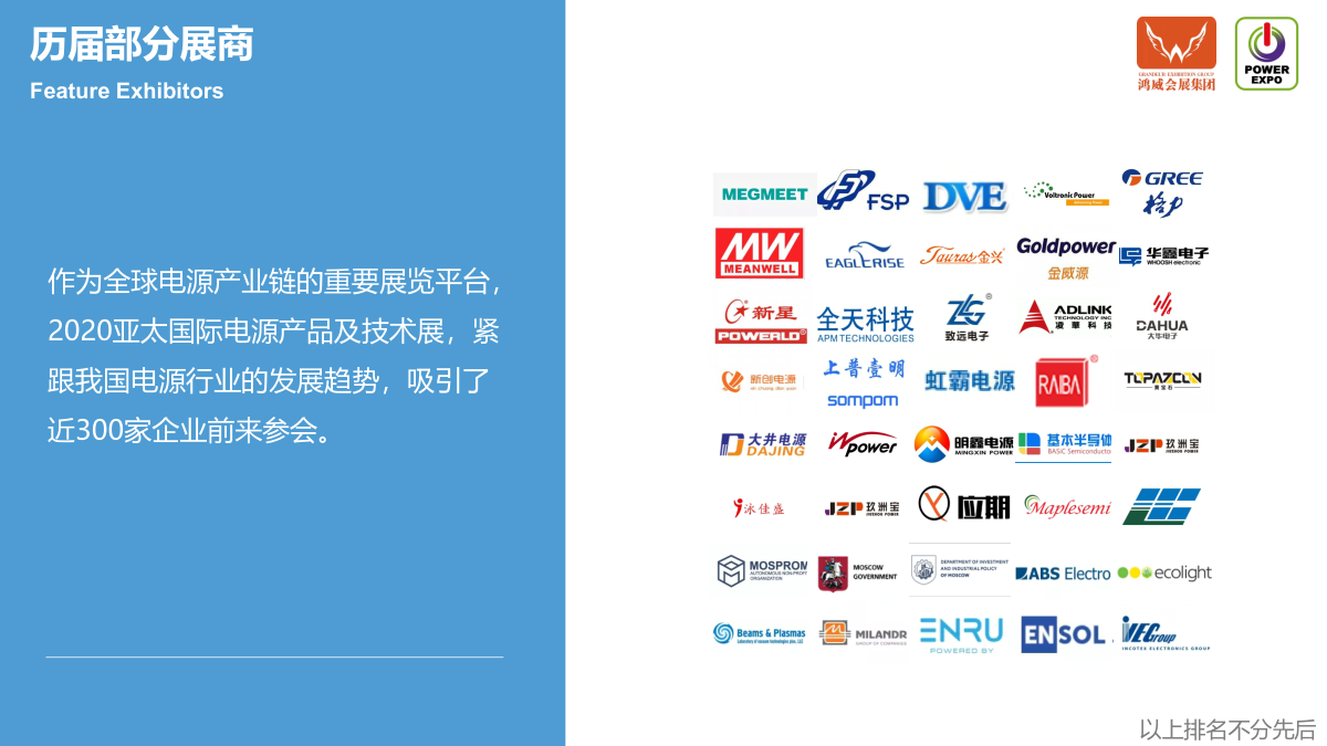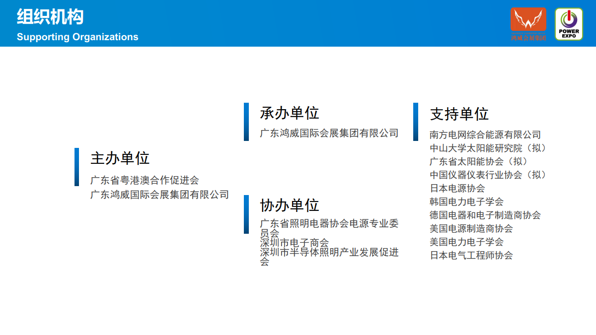 2021第十一届亚太国际电源产品及技术展览会(Power China 2021)是2021中国国际节能储能、清洁能源博览会旗 下重点推出的专题展,旨在更好地满足电源行业国内外市场需 求。展会获得包括广东省照明电器协会电源专业委员会、深圳 市电子商会、深圳市半导体照明产业发展促进会、广东省对外 经济合作企业协会、广东省粤港澳经贸合作促进会联合等国家 各级相关部门组织支持。