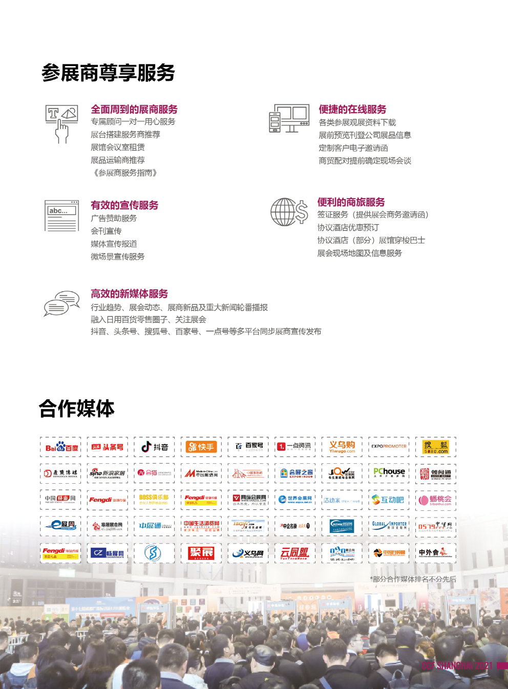 在“消费升级”趋势下,日用百货商品行业已形成千万亿级的市场规模。以庞大市场需求为导向,CCF上海国际日用百货商品(春季)博览会应时而生,立足上海,洞察新趋势,把握新商机,搭建专业高效的日用百货商贸领域全品类、一站式采购平台。 CCF 2021上海日用百货春季展全面践行全产业链覆盖模式,集聚精品,满足新消费理念下客商的采购需求,为行业上下游产业人士带来商贸机遇及绝佳参展、参观体验。 CCF 2021上海日用百货春季展将与世界顶级食品和饮料全品类大展——“第二十二届中国国际食品和饮料展览会(SIAL China)”同期举办,17个展馆、22万平方米总规模。15万人次专业观众。CCF 2021上海日用百货春季展组委会制定……