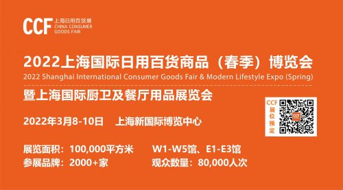 以“聚焦品牌.引领行业”为办展理念的CCF 2022上海国际日用百货商品(春季)博览会将于2022年3月8-10日在上海新国际博览中心举办。