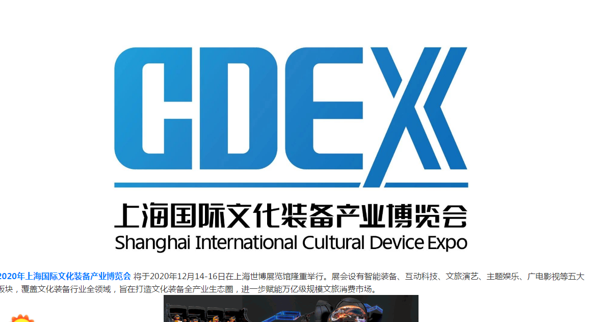 2020年上海国际文化装备产业博览会将于2020年12月14-16日在上海世博展览馆隆重举行。展会设有智能装备、互动科技、文旅演艺、主题娱乐、广电影视等五大板块,覆盖文化装备行业全领域,旨在打造文化装备全产业生态圈,进一步赋能万亿级规模文旅消费市场。 文化装备是提升文化软实力的重要基础,自2018年起,上海国际文化装备产业博览会(CDEX)在文化和旅游部的关心下,在上海市委宣传部、上海市经信委、上海市文化和旅游局、上海市科委、上海市商委、上海市文创办等支持下,已成功举办2届,受到了各界一致好评,累计吸引了近400余家专业展商、近6万余名国内外专业观众,累计展示了120个高科技文化装备创新应用案例、……