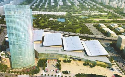 此外,作为会展中心的配套项目,还将建高标准会议中心和46层的星级酒店,能够同时接待2000人以上开会就餐,酒店也拥有900多间客房,也是目前酒店房间数最多的。