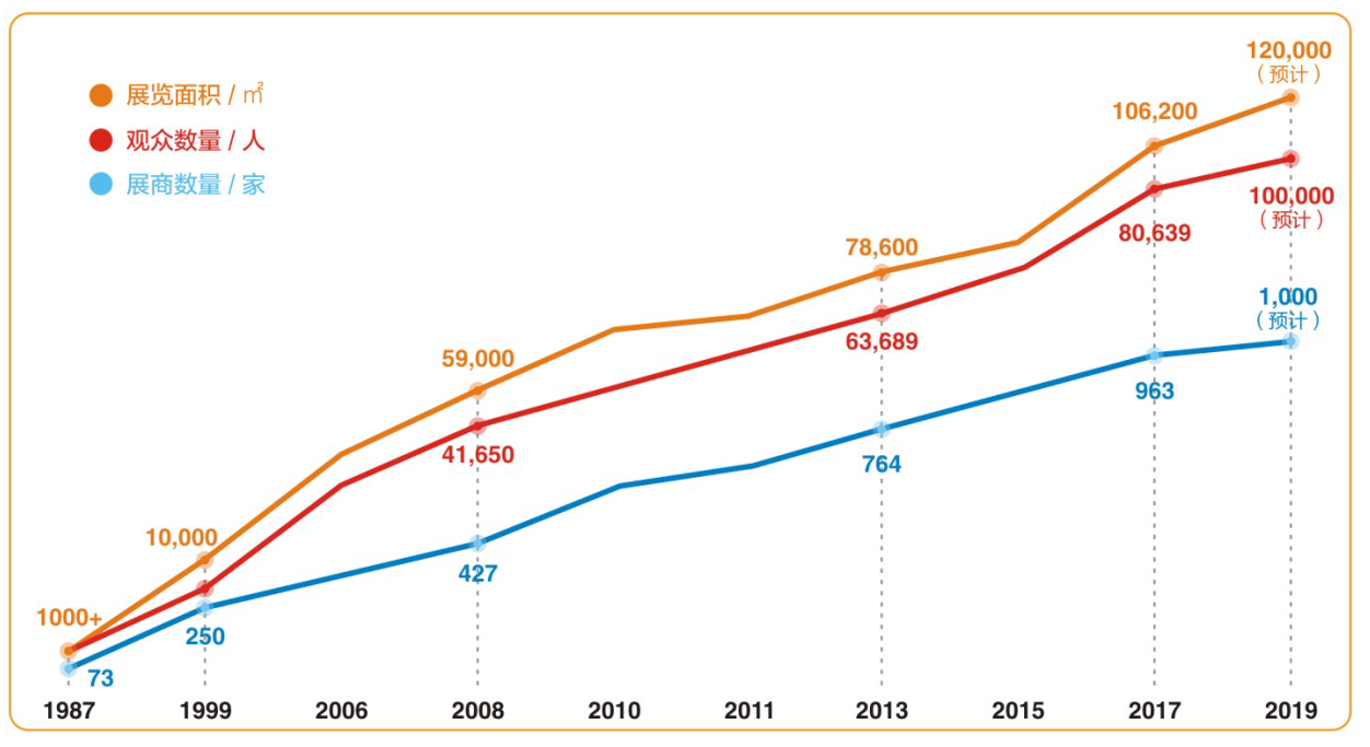 1987年,首届陶瓷工业展的参展商数量仅73家,展览规模不足2000平方米。