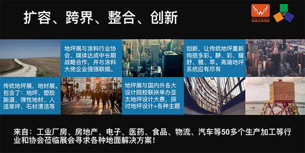 组委会为推动中国地坪及相关产业转型的步伐,2022年展会将开设3个展馆,展会规模30000平方米,将吸引来自中国、东南亚、欧美、中东、中亚等全球的专业买家团参观及采购。现场展品将覆盖地坪涂料及运动场地、弹性地材、涂料涂装等多个领域。展会吸引来自地坪从业单位、房地产、物业、石材、物流、仓储、学校、烟厂、电子、医药及工业领域的提供并搭建一个展示、交易、合作的平台,为行业构建一个优秀产品展示和技术交流以及项目合作的业界盛会。