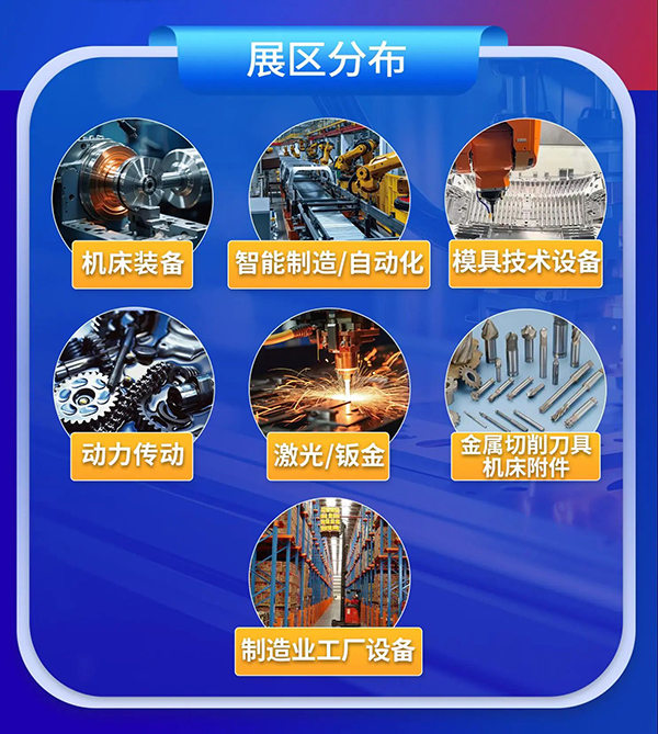 本届展会紧跟全球制造业数字化、智能化的发展趋势,围绕“高效加工”“智能制造”“产业应用”等核心主题,设置机床装备、模具技术设备、智能制造/自动化、激光钣金、动力传动、金属切削刀具/机床附件、制造业工厂设备七大展区。