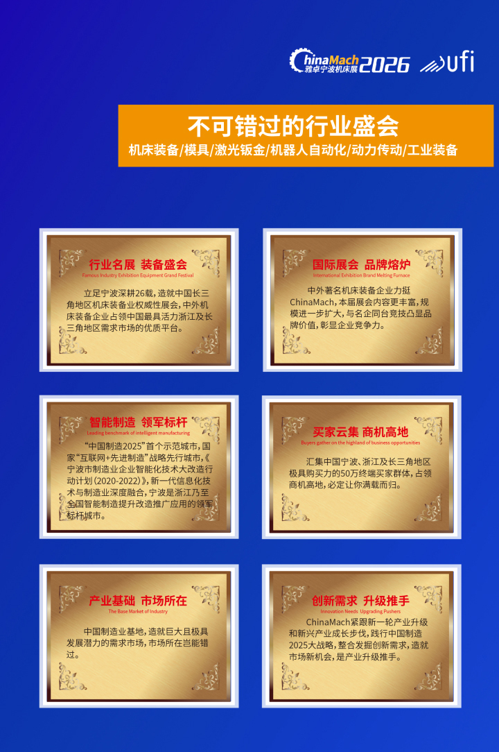 【行业名展装备盛会】—立足宁波深耕26载,造就中国长三角地区机床装备业权威性展会,中外机床装备企业占领中国最具活力浙江及长三角地区需求市场的优质平台。