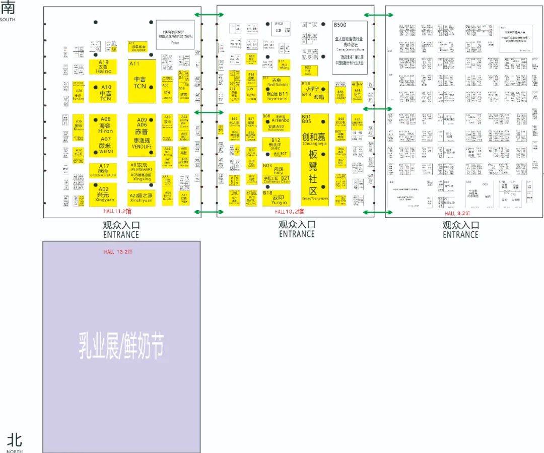 B区行人由4号门进入;驾车观众从2号门驶入,途径展场东路进入东北停车场乘电梯上展厅。