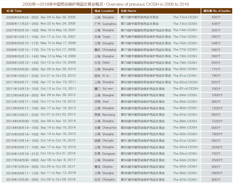2006年-2018年 中国劳动保护用品交易会概况
