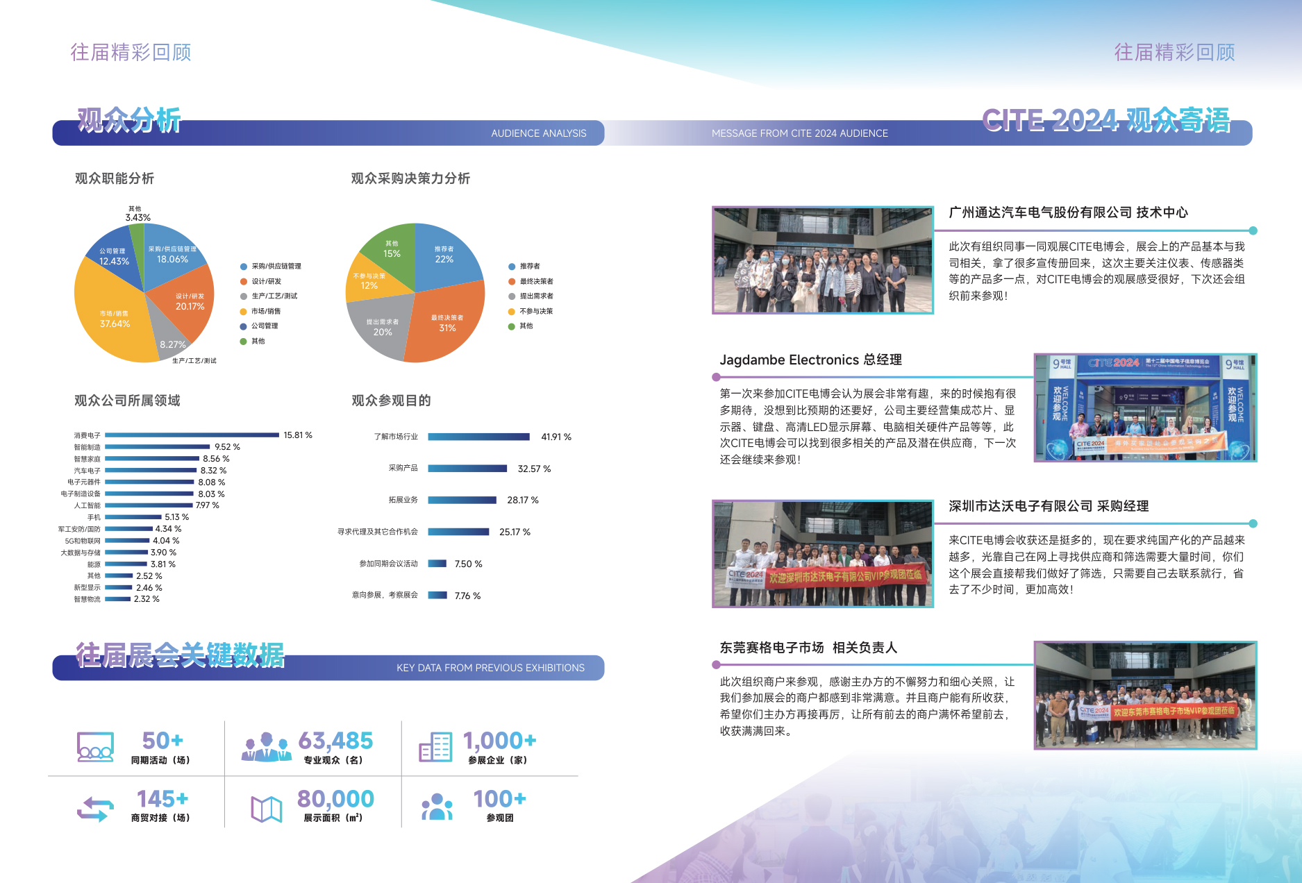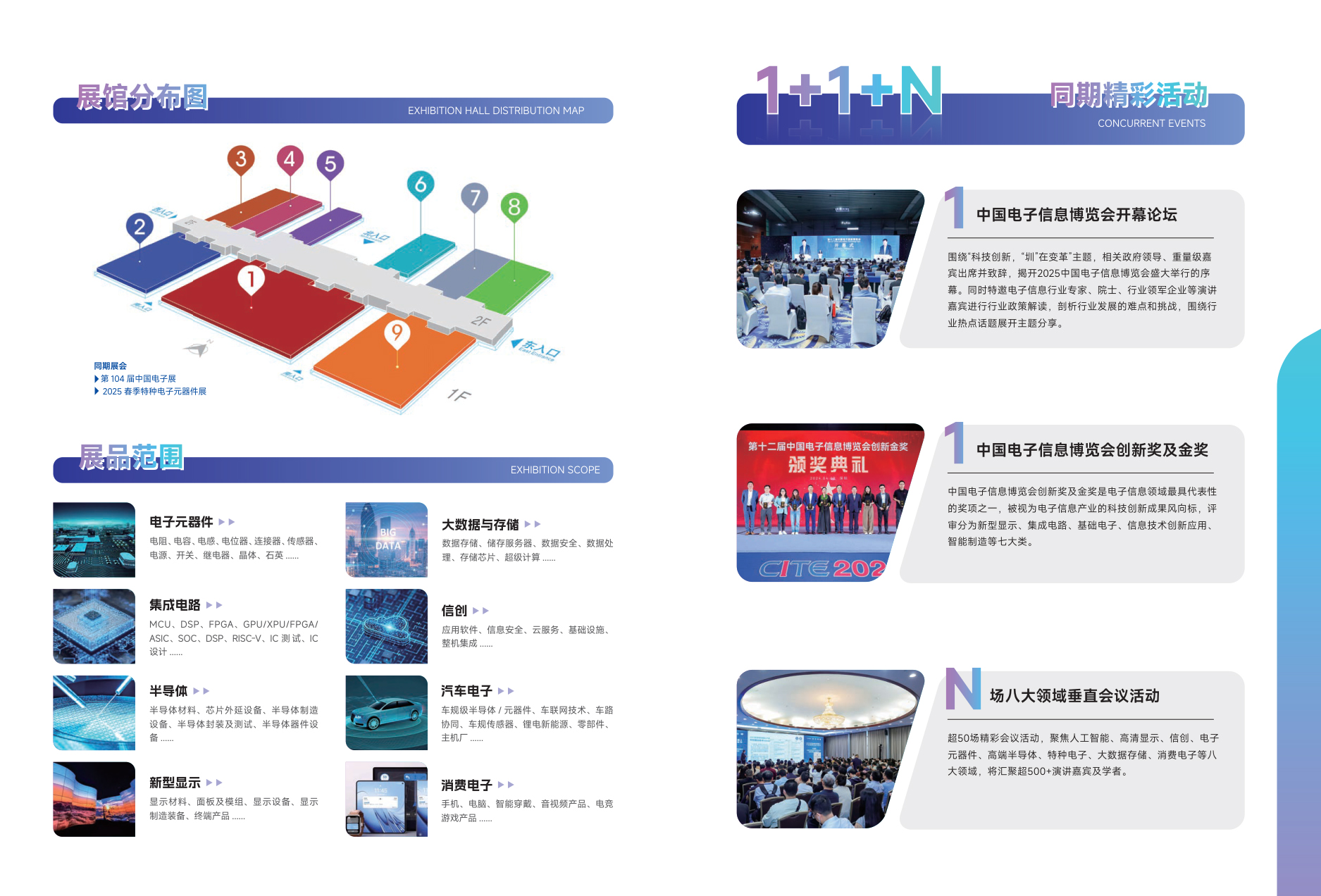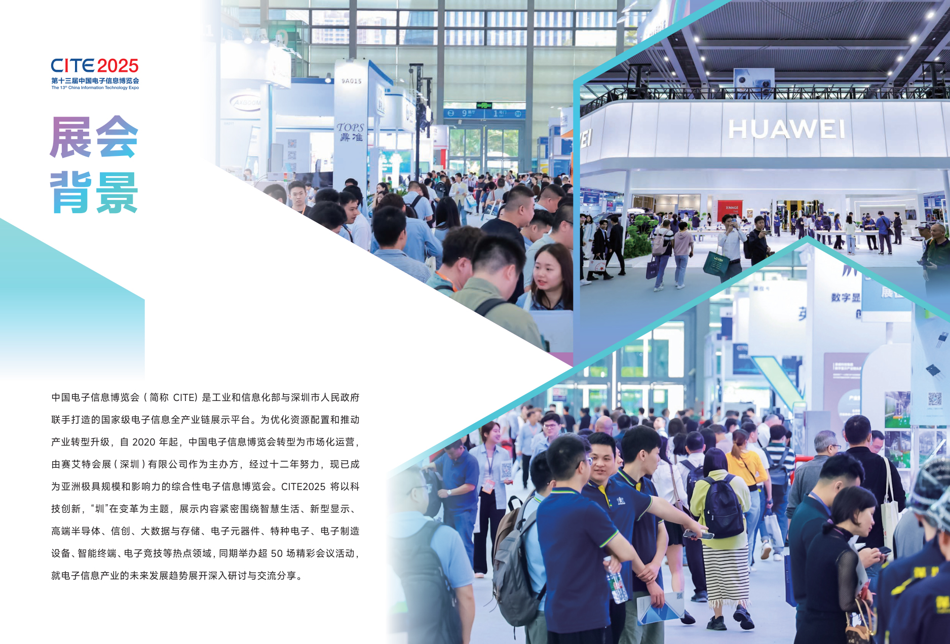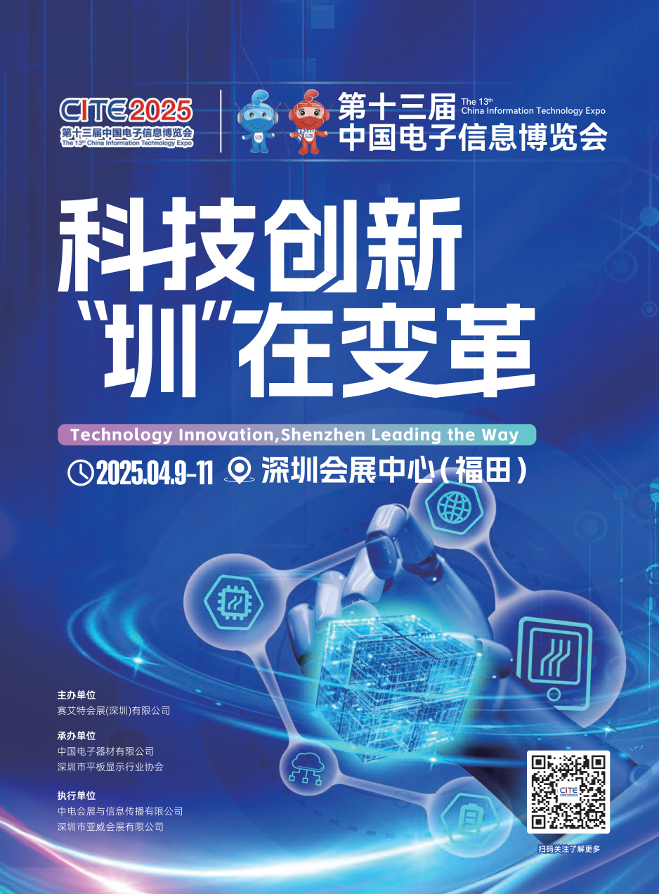 中国电子信息博览会(中文简称:电博会,英文简称:CITE),是展示全球电子信息产业最新产品和技术的专业商贸平台,经过十一年努力,现已成为亚洲极具规模和影响力的电子信息博览会。展会聚焦智慧家庭、新型显示、高端半导体、信创、大数据与存储、特种电子、人工智能、绿色消费电子、基础元器件等行业热点。CITE2025将于2025年4月9-11日在深圳会展中心(福田)隆重举办!展示面积达10万平方米,汇聚全球各地超1500家参展企业,将吸引超8万名专业观众莅临参观。