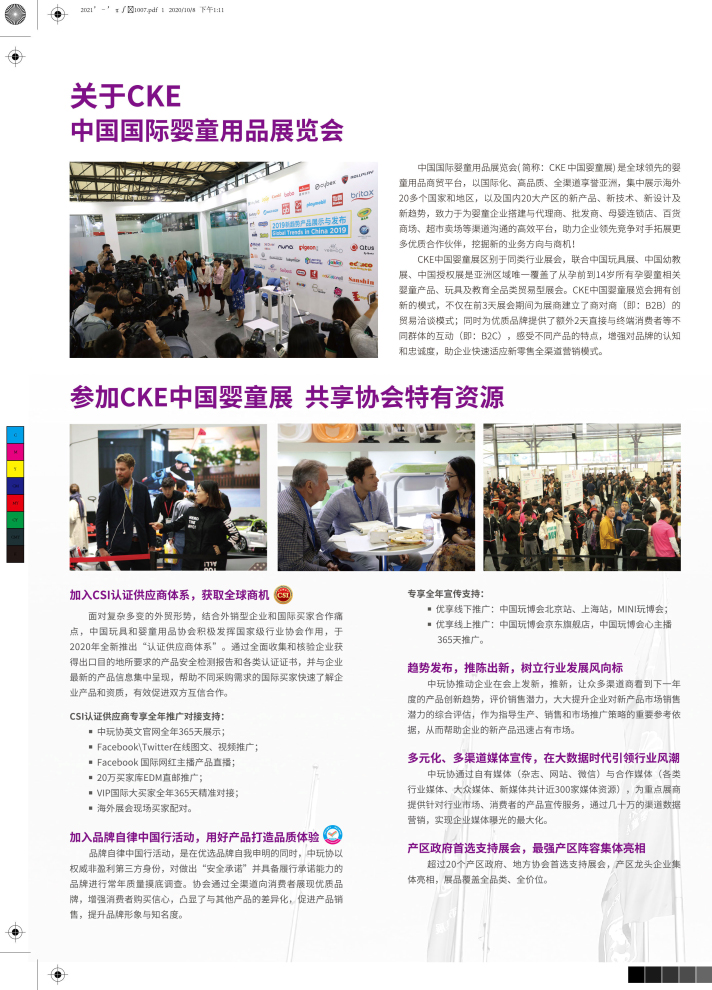 CKE婴童展,全称:上海婴童用品展览会Shanghai Baby Articles Fair,隶属于中玩恒大会展服务(北京)有限公司,与CTE中国玩具展、CPE中国幼教展、CLE中国授权展同期,集中展示海外30多个国家和地区,以及国内20大产区特色企业的新产品、新技术、新设计及新趋势。