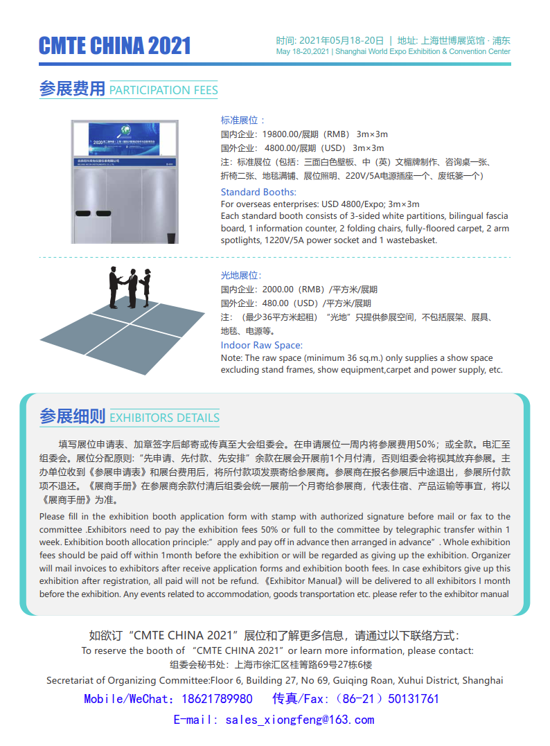 To reserve the booth of “CMTE CHINA 2021”or learn more information, please contact: