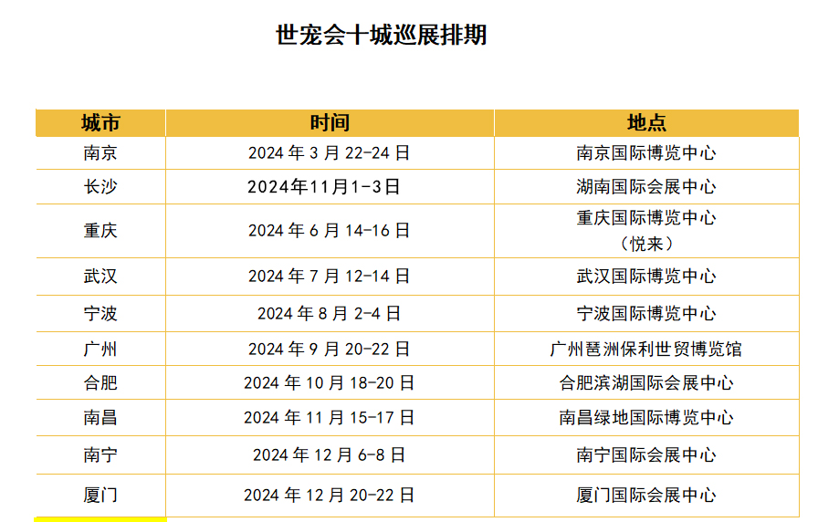 鸿威•世界宠物博览会(GWPF世宠会)将在全国十个城市巡回展出,以广州为首站出发,陆续登陆长沙、重庆、武汉、宁波、南京、合肥、南昌、南宁、厦门九个城市。