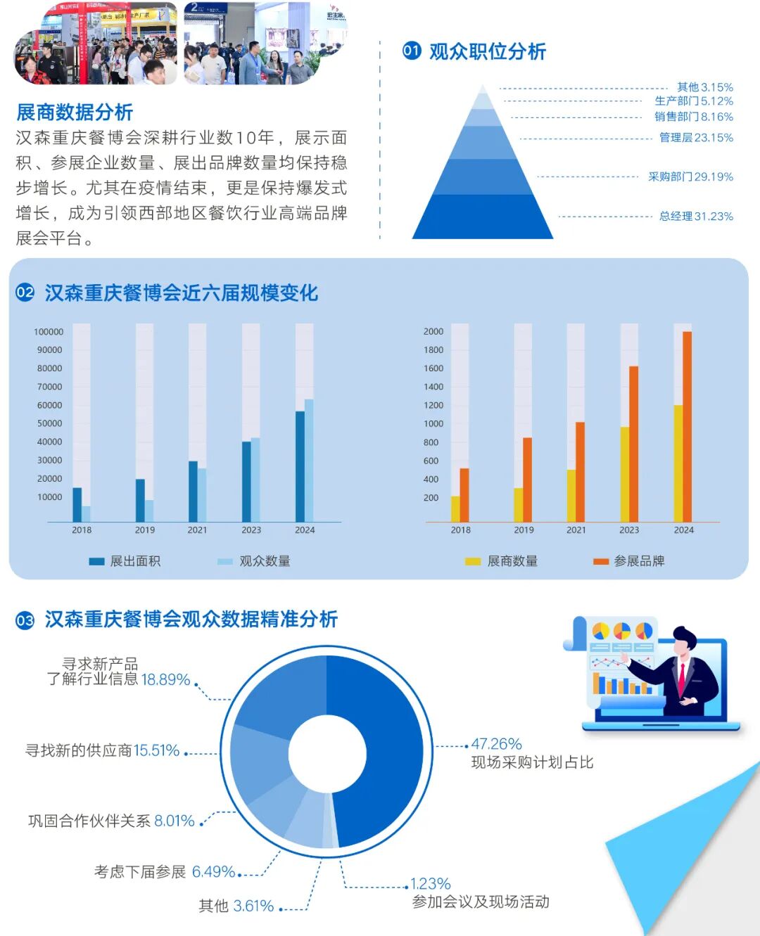 汉森重庆餐博会深耕行业数10年,展示面积、参展企业数量、展出品牌数量均保持稳步增长。已成为引领西部地区餐饮行业高端品牌展会平台。
