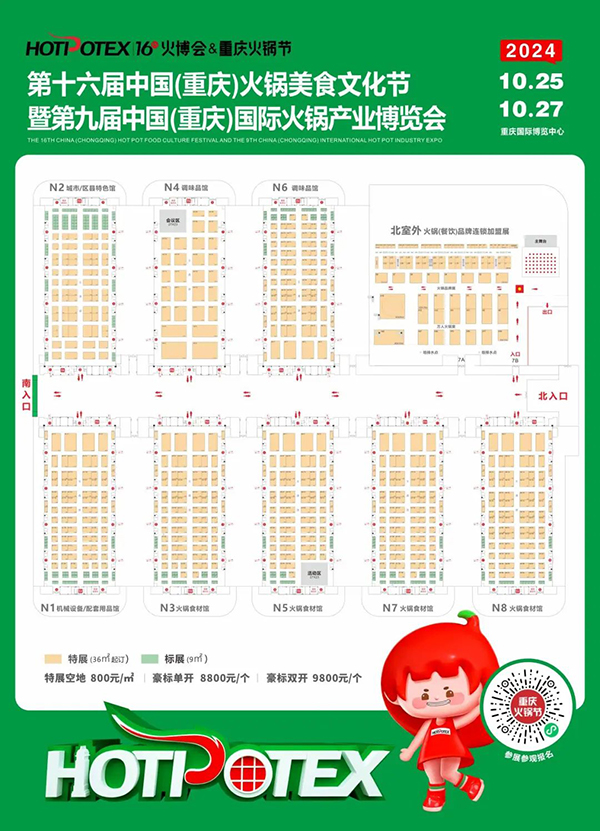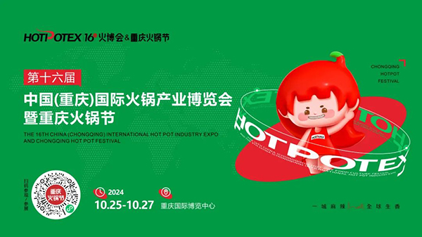 第十六届中国(重庆)火锅美食文化节暨第九届中国(重庆)国际火锅产业博览会(简称火博会暨火锅节)拓新升级,以120000㎡展览规模、2000+品牌展商、150000+专业观众全新启航,将于2024年10月25-27日在重庆国际博览中心隆重亮相。