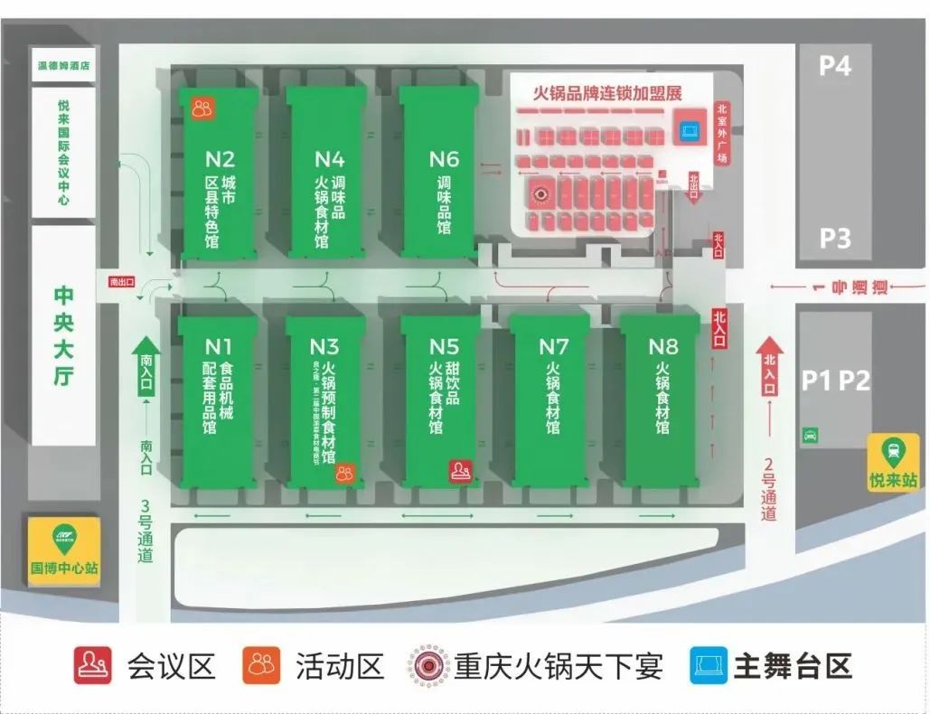 定位重庆国际博览中心1号门→北入口 定位重庆国际博览中心3号门→南入口 自驾出行 导航重庆国际博览中心→根据现场指引停车入场