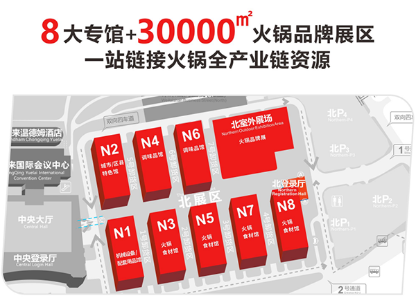 北室外展区作为历届火博会上以来最引人瞩目的特色展区,今年将全新打造30000㎡火锅(餐饮)品牌加盟重要阵地。这里集全球各类火锅消费、品牌展演、宣传推广、吃喝玩乐于一体,并首次引入的餐饮品牌展区,为各大品牌搭建起了一个展示自身实力、寻找合作伙伴的高效平台,也为投资者和创业者提供一个全面了解火锅及餐饮行业加盟的黄金平台!