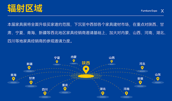 本届家具展将全面升级买家邀约范围,下沉至各个家具建材市场,在重点对陕西、甘肃、宁夏、青海、新疆等西北地区家具经销商邀请基础上,加大对内蒙、山西、河南、湖北、四川等地家具经销商的参观邀请力度。