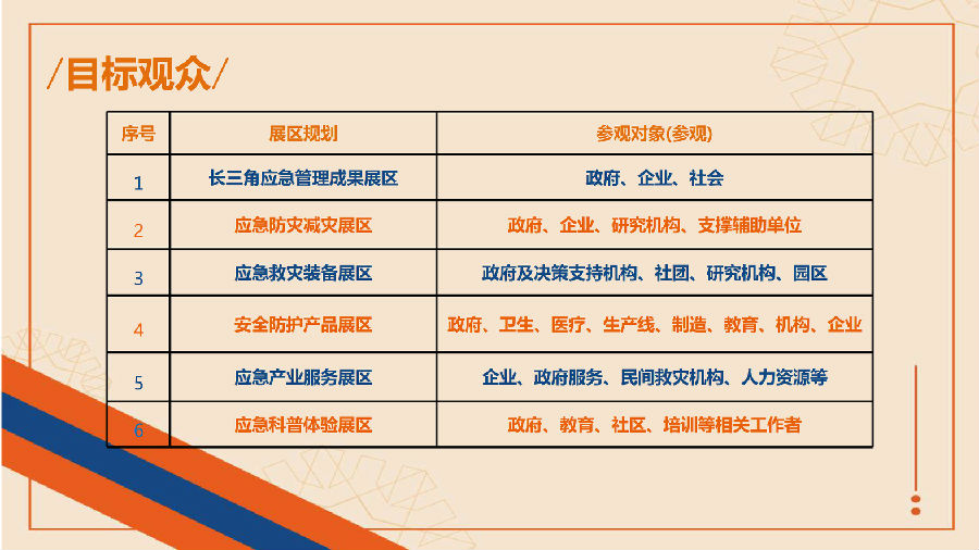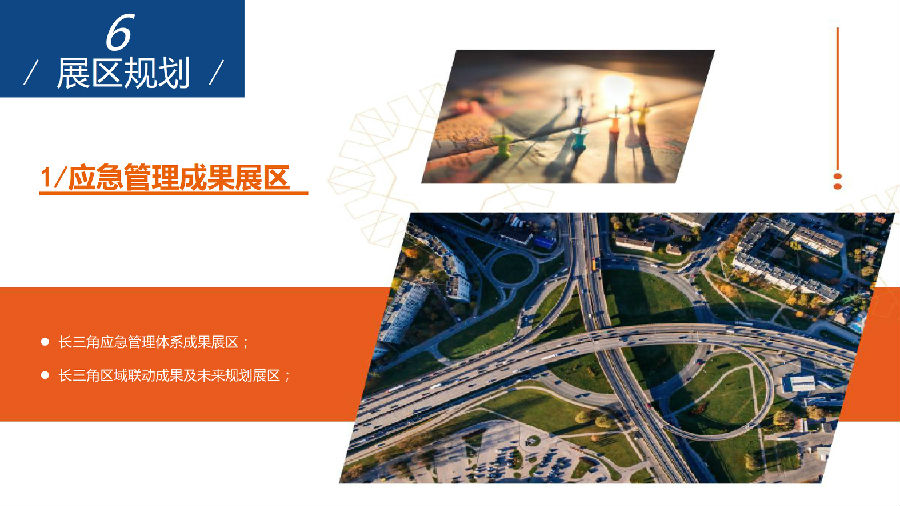 6. 应急管理成果展区:长三角应急管理体系成果展区;长三角区域联动成果及未来规划展区;