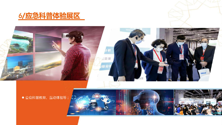 5. 应急科普体验展区:公众科普教育、互动体验等;
