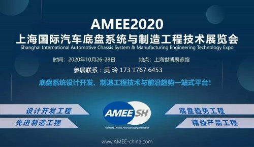 AMEE2020上海国际汽车底盘系统与制造工程技术展览会定于2020 年10 月26-28 号在上海世博展览馆举办,这是全球汽车行业第一个专门针对底盘系统产业链领域举办的专业技术展览会,AMEE 将打造新能源汽车底盘系统智能化、电动化、电子化、轻量化,以及乘用车、商用车、特种车底盘设计开发工程、先进制造工程、底盘趋势工程、精益产品工程等产业链前沿技术与解决方案展示平台。