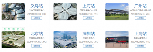 义乌站:义乌国际博览中心 2020年08月03-05日 上海站:上海国家会展中心 2020年08月18-19日