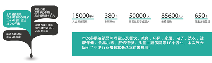 “2019第38届北京国际连锁加盟展览会”紧密结合当前连锁加盟行业的发展热点,将重点推出细分专区,就餐饮、教育等十几个热门领域集中分区展示,为专业观众提供更加多元便利的创业投资环境,为参展企业了解业内相关市场,拓展新商业领域,结识新贸易伙伴提供重要的平台。 此外,为配合专区的展示内容,本届展会还将继续举办相应的主题论坛、研讨会和项目推介会,邀请行业权威专家解析行业政策,分享企业发展经验,引导连锁加盟行业市场热点和动向,更加丰富的内容充分体现专业展的水平。可以预见,“2019北京连锁加盟展览会”必将会成为连锁加盟行业展展商、观众和媒体共同关注的焦点。