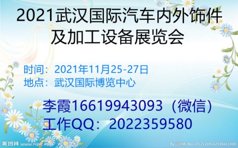 20 21 武汉国际汽车内外饰件及加工设备展览会 20 21 WuhanInternationalAutomotiveInteriorsExteriorsandProcessingEquipmentExhibition 时间: 2021 年 11 月 25 - 27 日 地点 : 武汉国际博览中心 集结精良装备 创高……阅读全文>>会议时间:2021-11-25至2021-11-27  举办地点:武汉国际