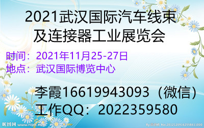 2021 武汉国际汽车线束及连接器工业展览会 Wuhan International Automobile Harness Connector Industry Expo,2021 时间: 2021年11月25-27日 地点:武汉国际博览中心 邀 请 函 ★支持单位: 中国汽车工业协……阅读全文>>会议时间:2021-11-25至2021-11-27  举办地点:武汉