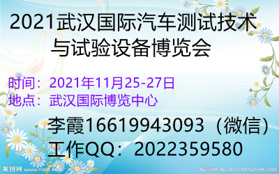 2021武汉国际汽车制造技术暨智能装备博览会 暨汽车测试与质量监控主题展 时间:2021年11月25-27日 地点:武汉国际博览中心 集结精良装备 创高品质汽车之源 邀请函 ★支持单位:中国汽……阅读全文>>会议时间:2021-11-25至2021-11-27  举办地点:武汉