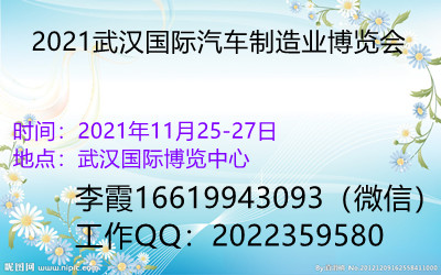 202 1 武汉国际汽车制造业展览会 202 1 武汉国际汽车零部件展览会 时间: 2021 年 11 月 25-27 日 地点:武汉国际博览中心 邀请函 ★主办单位 湖北省机械行业联合会 中国汽配行业协会 武汉……阅读全文>>会议时间:2021-11-25至2021-11-27  举办地点:武汉