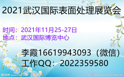 20 21 中国(武汉)国际表面处理展览会 China International(WuHan)Surface Treatment Exhibition 2021 时间: 2021 年 11 月 25-27 日 地点:武汉国际博览中心 邀请函 ★主办单位 中国汽车工业协会 中国汽……阅读全文>>会议时间:2021-11-25至2021-11-27  举办地点:武汉国际博览中心
