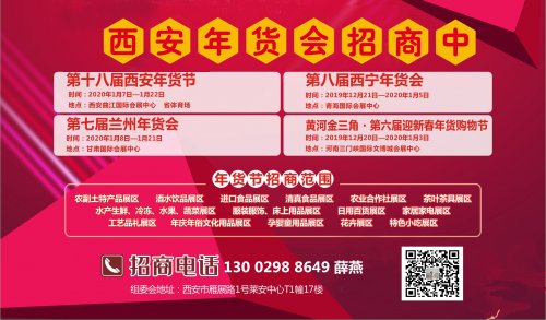 2020 第十 八 届西安年货会 时间: 2020年1月7日—1月22日 地点:西安曲江会展中心、陕西省体育场 主办单位:陕西省商务厅、西安市商务局 承办单位:西安旭峰丝路会展有限公司 组委会……阅读全文>>会议时间:2020-01-07至2020-01-22  举办地点:西安曲江会展中心、陕西省体育场