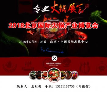 2018 北京国际火锅产业 展览会 时间:2018年6月21-23日 地点:北京,中国国际展览中心 主办单位: 北京 恒辉国际展览有限公司 北京市餐饮行业协会 北京市餐饮行业协会火锅烧烤专业委……阅读全文>>会议时间:2018-06-21至2018-06-23  举办地点:北京市朝阳区北三环东路6号