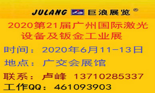 2020第二十一届广州国际激光设备及钣金工业展览会 主管单位:中华人民共和国商务部外贸司 批准单位:广东省对外贸易经济合作厅 主办单位:广州巨浪展览策划有限公司 支持单位:……阅读全文>>会议时间:2020-06-11至2020-06-13  举办地点:广州-中国进出口商品交易会展馆