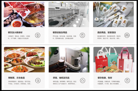 餐饮食材:水产类、肉禽类、面点类、果蔬类、速食食品、肉类食材、自热食品等;
