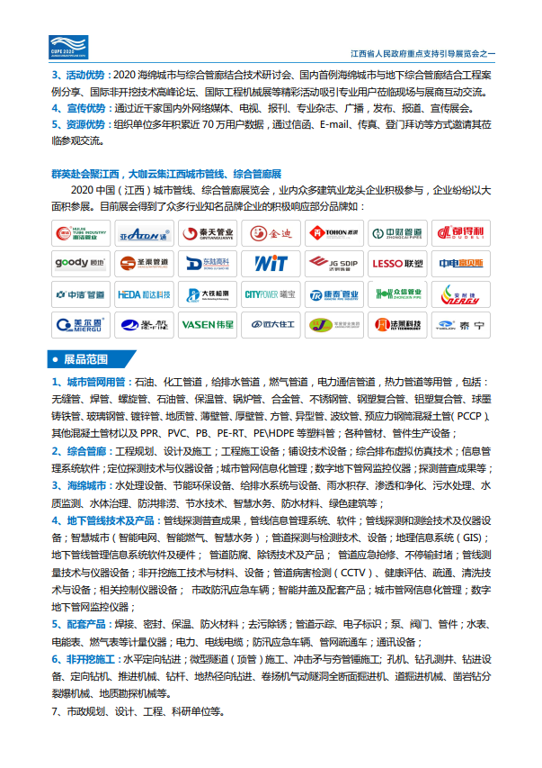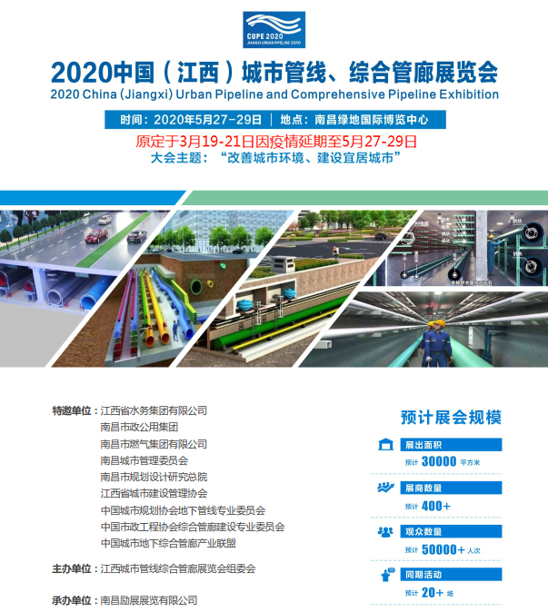 展会名称:2020中国(江西)城市管线、综合管廊展览会