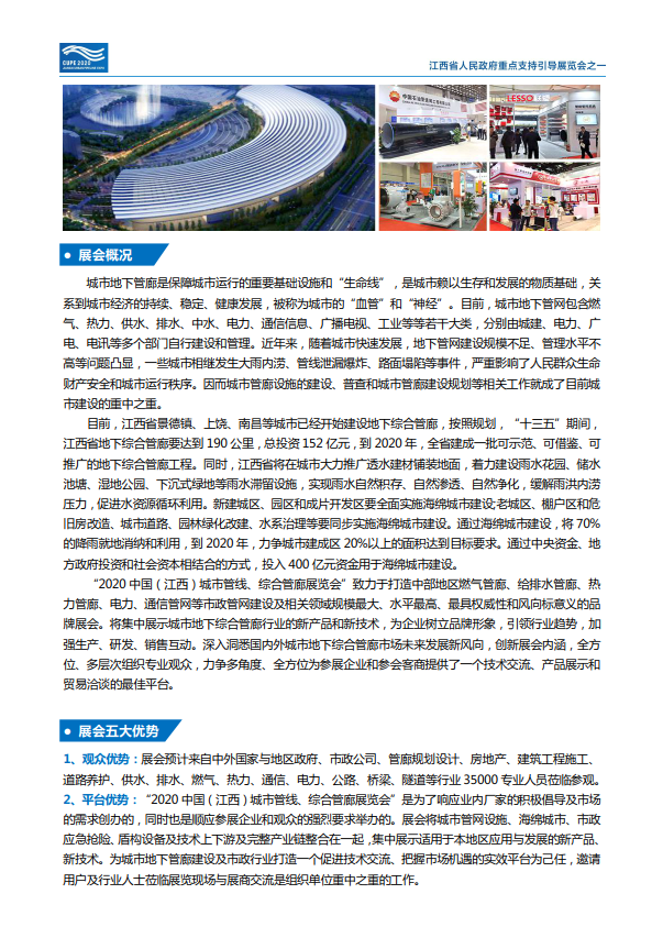 中国(江西)城市管线、综合管廊展览会”致力于打造中部地区燃气管廊、给排水管廊、热