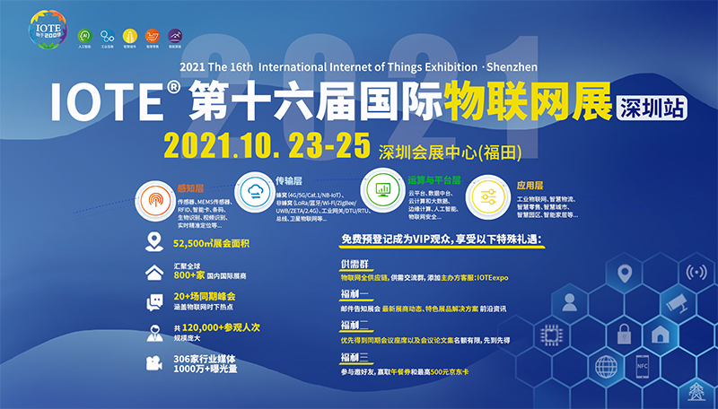 IOTE® 2021第十六届国际物联网展·深圳站,是一个关于物联网完整产业链,覆盖物联网感知层、网络层、运算与平台层、应用层,涉及RFID(无线射频识别)技术、传感网技术、物联网通信技术、金融消费移动支付技术、中间件的精确控制技术、大数据处理、AIoT、云计算、边缘计算、实时定位技术等物联网技术在交通、工业、智能电网、智能家居、物流、防伪、人员、车辆、资产管理、服饰、图书、智慧城市、环境监测等领域的全面解决方案和成功应用展示的高级别国际盛会。