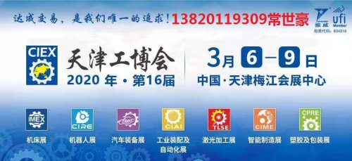 第十六届天津工博会(英文:CIEX)于2020年3月6-9日在天津梅江会展中心举办。天津工博会,是国际展览业协会(UFI)认证的国际品牌展会,立足中国先进制造研发基地——天津,以高端数控机床、智能控制系统、工业机器人、自动化成套生产线、激光焊接产线、汽车制造垂直产线及塑胶为展示核心,集品牌展示、技术交流、贸易合作、宣传推广、国际研讨于一体,为推动全球工业升级提供一站式会展平台。