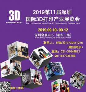 欢迎参加“2019第11届深圳国际3D打印产业展览会”简称:“3D Printing Shenzhen 2019”,本届展会将于2019年9月10-12日在深圳会展中心与“2019第九届深圳国际工业自动化展览会”两展同期盛大开幕。将集中展示3D打印产品与技术,为包括工业设计、机械制造、航空航天、军工装备、医疗、珠宝制造、模型制作以及时装、电影、建筑、创意设计等行业和领域提供复杂构件的一次成型制造及创新3D打印产品、技术和专业服务。