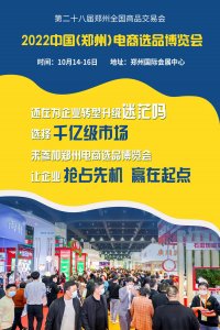 第二十八届郑州全国商品交易会 新电商选品展区 (一)展会介绍 郑州全国商品交易会是河南省人民政府主办,郑州市 人民政府、河南省商务厅共同承办的全国性大型经贸 活动,自1……阅读全文>>展会日期:2022-10-14至2022-10-16  举办展馆:郑州国际会展中心