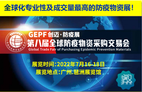 全球化专业性及成交量最高的防疫物资展! GEPF创迈·防疫展 第八届全球防疫物资采购交易会 展览时间∶2022年7月16-18日 展览地点∶广州.琶洲展览馆 支持单位中国出入境检验检疫协会防……阅读全文>>展会日期:2022-07-16至2022-07-18  举办展馆:广州.琶洲展览馆