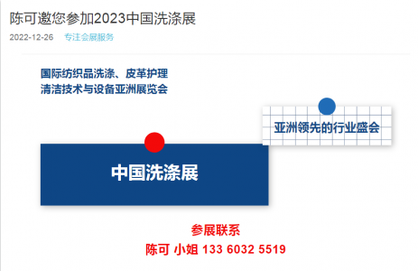 2023洗涤化料展/2023分配器展览会/202 3 国际纺织品洗涤、皮革护理、清洁技术与设备亚洲展览会(简称:中国洗涤展) 展览日期 202 3 年 9 月 25 至 27 日 (只针对专业买家及受邀观众免费……阅读全文>>展会日期:2023-09-25至2023-09-27  举办展馆:上海新国际博览中心