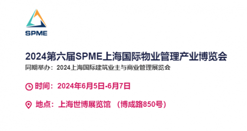 物业展 - 2024 上海物业展 (2024SPME第六届上海国际物业管理产业博览 会 ) 同期举办: 202 4 上海国际建筑业主与商业管理产业展览会 时间: 20 24 年 06 月 05 — 6月 07 日 主办单位:上海物携……阅读全文>>展会日期:2024-06-05至2024-06-07  举办展馆:上海世博展览馆(博成路850号)
