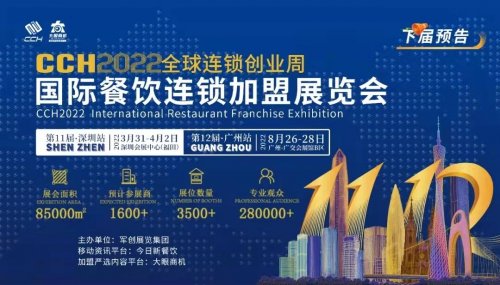 202 2 第十 一 届 CCH 深圳 餐饮连锁加盟展 由世界饭店联合会、中国烹饪协会主办的 CCH 国际连锁加盟展,涵盖餐饮、酒店、咖啡饮品、智慧零售等多版块内容。尤其其中的餐饮连锁项目……阅读全文>>展会日期:2022-03-31至2022-04-02  举办展馆:深圳会展中心