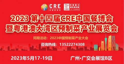 2023第十四届CRE中国餐博会暨粤港澳大湾区预制菜产业展览会 同期论坛:2023中国预制菜产业大会 时间:2023年5月17-19日 地点:广州·广交会展馆B区 主办单位 广东省餐饮服务行业协会 广……阅读全文>>展会日期:2023-05-17至2023-05-19  举办展馆:中国进出口商品交易会馆B区